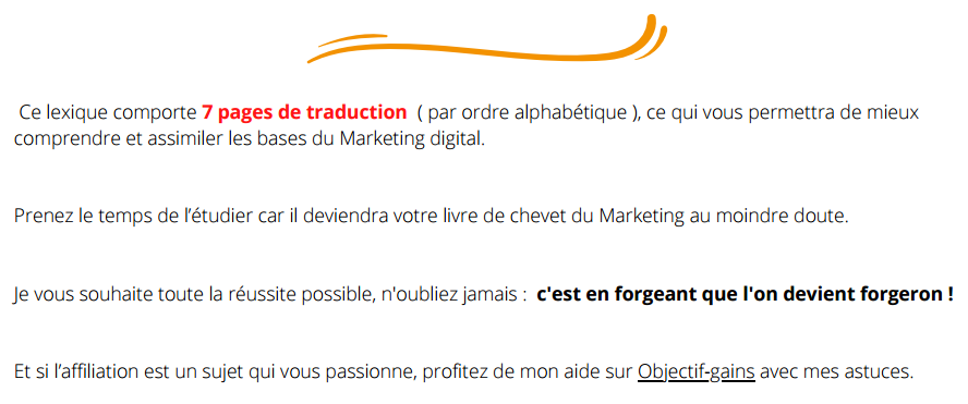 Il suffit de comprendre que toutes ces formations, ces formules Marketing ne sont, en vérité, rien d'autre... que des mots dont il faut saisir le sens, rien de plus !